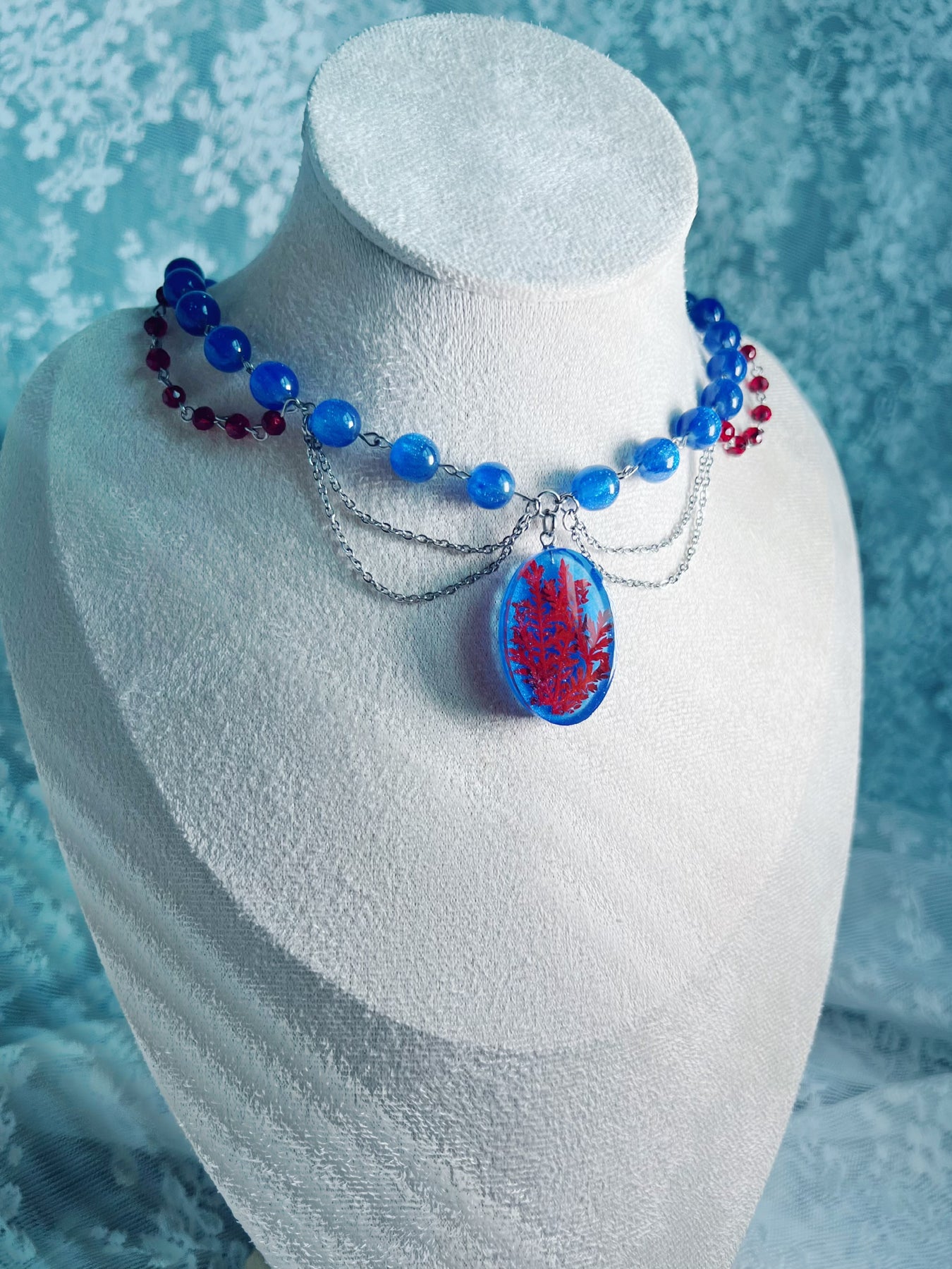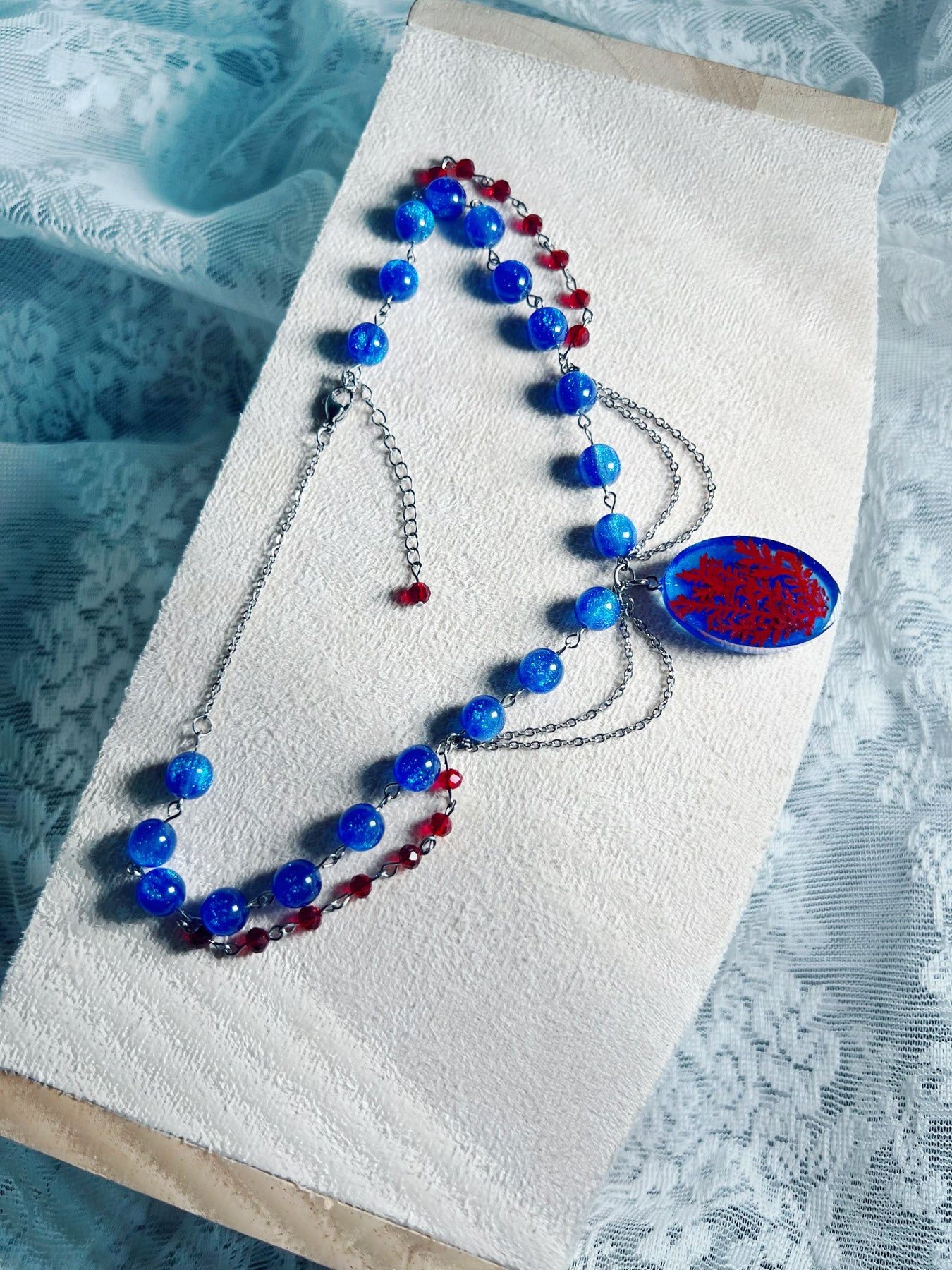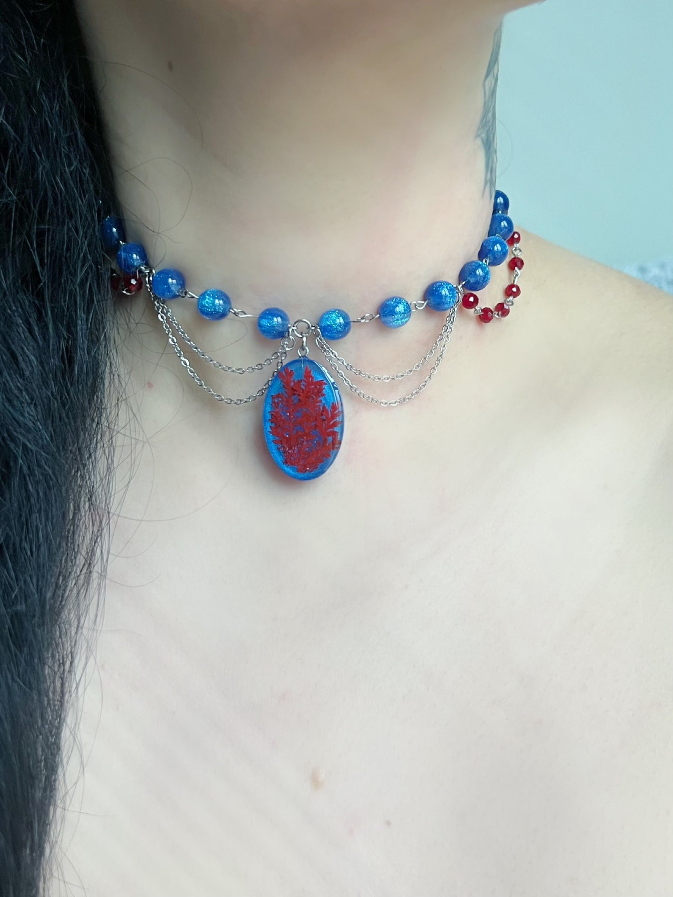 Material: stainless steel, resin, beads (acrylic, glass)